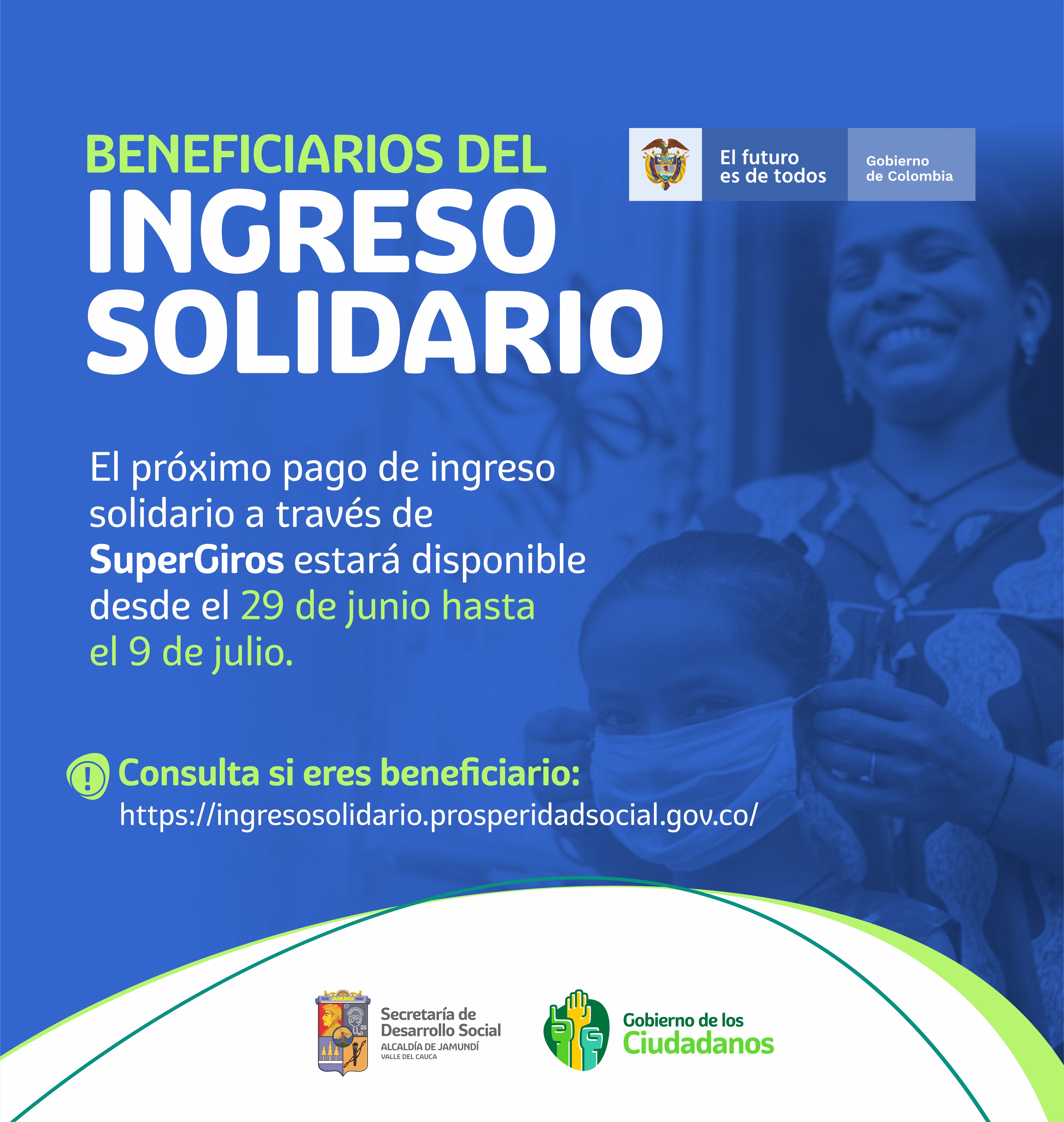 Ingreso solidario es un apoyo económico del gobierno nacional que tiene como fin mitigar los impactos derivados de la emergencia del coronavirus sobre la los beneficiarios que cuenten con un producto financiero en alguna de las entidades financieras aliadas del programa reciben su pago.